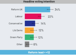 The by-election in Caerphilly for Hefin David’s seat in the WP/SC is due on October 23, and the latest UK opinion poll puts Reform UK in the lead by 12 points.