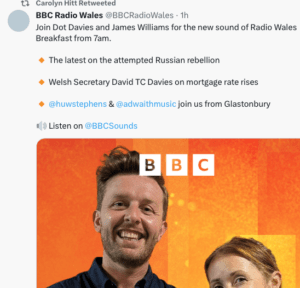 But the station has often hit the headlines for unfortunate reasons. Our journalists have been alone in reporting that Ms Hitt’s predecessor as RW Editor, Colin Paterson, had an unwise affair with the presenter Lucy Owen, and the story about it was included in another critical DS comment concerning RW with the message above the link saying “…the record low listening figures at Radio Wales under it’s (sic) current management (were) amplified this year by criticism from former award winning reporters and presenters”.