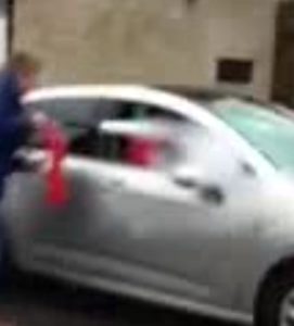 In the clip now on YouTube, Mr Owens escapes from the car running, but Mr Davies uses the fire extinguisher again, as the person filming it exclaims in Welsh “OH, NO!”, and Mr Owens then shouts “IDIOT!” at him pointing.