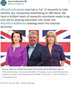 This attempt to gag our journalists, mirrors the efforts of a campaign against ‘GB News’ by a group calling itself ‘Stop Funding Hate’, yet none of the three people pictured in a recent Twitter announcement by the group will have actually worked for ‘GB News’, as it has not broadcast a single second of content.