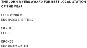 Yet gold in this local radio category was won by BBC Radio Sheffield (RS), while silver was taken by the small commercial station in Glasgow, Clyde 1.