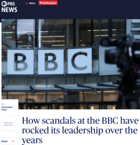 Here is the reaction of the agency Associated Press (AP) in its ‘PBS NEWS’: “The scandal leading to (the) resignations is hardly the first controversy to hit Britain’s publicly funded broadcaster — or to topple one of its leaders…