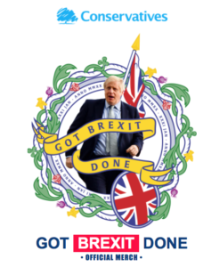The Tories have sent out to their supporters adverts for merchandise to celebrate escaping the clutches of Eurocrats where you can buy victory mugs and tea towels, using a picture of Bojo with the Union flag.