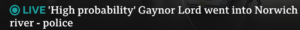 A few hours later we also had from the giant corporation as ‘BREAKING NEWS‘ – “LIVE ‘High probability’ Gaynor Lord went into Norwich river – police”.