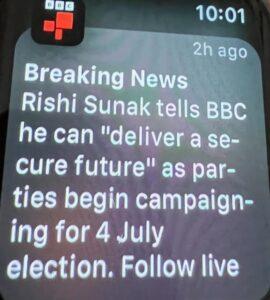 Within less than 24 hours of Rishi Sunak calling the election, we had the UK’s biggest broadcaster (the BBC) giving in this way information that he has claimed to the corporation he can “deliver a secure future”!