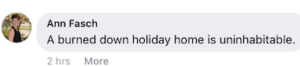 One incendiary comment on the FB version of NC was: “A burned down holiday home is uninhabitable” and another read: “fuck all the business and their families that rely on tourism. they can all go to hell the bloody traitors”.