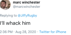 Mr Davies (whose nickname is Jiffy) called it on Twitter “negative” journalism, and a supporter of his added:  “I’ll whack him”.
