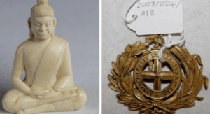 Stolen items include military badges and pins from the East India Company, and among the jewellery taken are necklaces, bangles and rings.