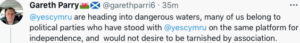 One wrote: “@yescymru are heading into dangerous waters, many of us belong to political parties who have stood with @yescymru on the same platform for independence, and would not desire to be tarnished by association”.