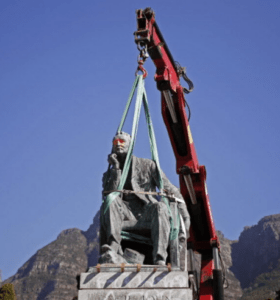 The statue was a fixture on the steps of the University of Cape Town  (UCT) but was first boarded up, then removed altogether.