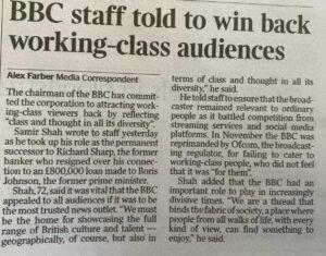 The new chairman of the BBC, Samir Shah, has written to staff saying it was vital that they appealed to all audiences if it was to be the most trusted news outlet. Mr Shah said: “We must be the home for showcasing the full range of British culture and talent – geographically, of course, but also in terms of class and thought in all its diversity”. He announced that corporation workers had to ensure the huge broadcaster remained relevant to ordinary people as it battled competition from streaming services and social media platforms.