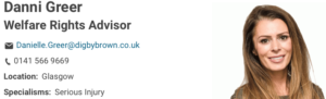 She works for Digby Brown solicitors in Glasgow as a ‘Welfare Rights Advisor’ specialising in serious injury so she should know the law well.