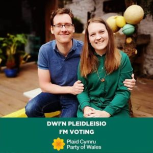 He put on FB a picture of a postal ballot paper, with his pen pointing at the PC candidate, and has posted a photograph of himself and his partner above the slogan “I’m voting Plaid Cymru”. In July 2016 he helped promote a rally for Welsh independence in Caernarfon and said that Wales:  “faced being part of a state which (is) being politically neglected”.
