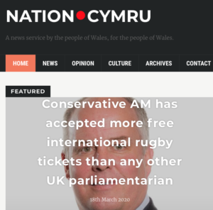 Meanwhile NC’s lack of journalistic neutrality has been shown by the fact that it failed to cover the astonishing news that PC did not declare large amounts of money, but DID publish a piece about the UK Tory party showing it in an extremely bad light, and another prominent item saying “Conservative AM has accepted more free international rugby tickets than any other UK politician”.