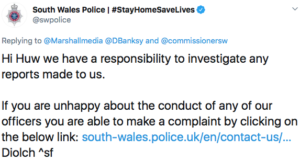 In response to a police inquiry into his actions, Mr Marshall said on Twitter that he had told South Wales Police (SWP) he intended to make a complaint, however officers answered by informing him that they had a “responsibility to investigate any reports”.