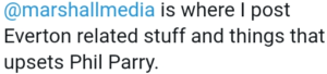 Mr Marshall has said, as well, that he has a number of different Twitter accounts, but stesses he reserves one for items which may bother Phil, declaring: “@marshallmedia is where I post Everton related stuff and things that upsets Phil Parry”, which was the account which “violated the Twitter rules”.
