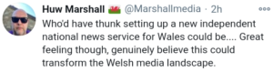 Two days later he claimed in a tweet his ‘project’ “could transform the Welsh media landscape”.
