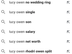 The programme Ms Owen hosted on BBC CW RW was called ‘Sunday morning with Lucy Owen’, and in the context of her affair, the ‘predictive search results’ in ‘Google’ for Ms Owen and her husband have been, perhaps, prescient.