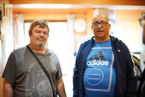 The photograph on Facebook (FB) shows Ellis Sherwood and Mike O’Brien who are now in their fifties, but the pair were young men, when they were wrongly convicted of the killing.