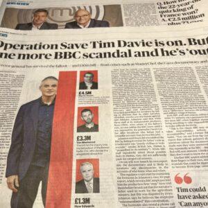 The Sunday Times has reported: ‘…one insider claimed Davie’s position with some board members was “more precarious”…”than people realise”‘. With the paper also publishing: “Since Davie got the top job in September 2020, the BBC has spent almost £10 million addressing scandals – equivalent to the licence fees of about 56,500 households at today’s annual £174.50 fee, according to Sunday Times analysis”.
