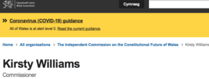 Yet in showing her credentials to join the Independent Commission On The Constitutional Future Of Wales the WG stated that Ms Williams: “… now chairs the advisory board of the International Learning Exchange Programme, Wales’ replacement for Erasmus+”.