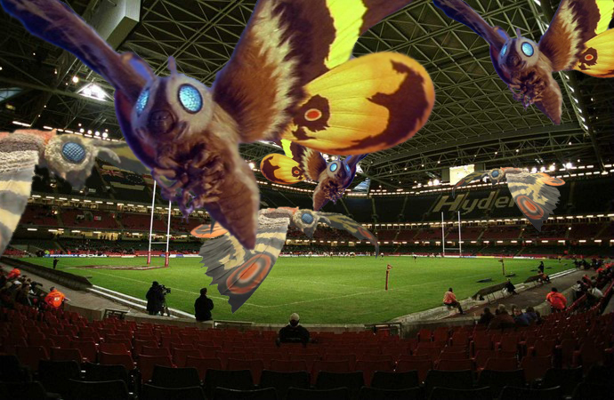 In years gone by the issue of whether or not the roof of the Principality Stadium would be open or closed was a major bone of contention. Traditionally, visiting teams have preferred it open due to the intensely oppressive atmosphere generated by the Welsh fans singing that song about the boy getting savaged by the family pet. This year the Trump administration backed Mothra breeding program means that up to ten Mothras could be in the Principality Stadium at the start of the game. Warren Gatland has expressed his preference for leaving them in during the game, arguing that “they don’t like the rain” and that “several of them have season tickets”.