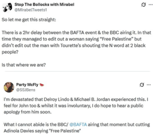 In contrast, the BBC DID edit out “Free Palestine” from an acceptance speech made by filmmaker Akinola Davies Jr., after ‘My Father’s Shadow‘ won the BAFTA for outstanding British debut.