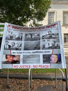 Now there is more evidence, but this time OUTSIDE that same court – of a protest demanding a judicial inquiry into the extraordinarily high number of miscarriages with SWP at the centre, shining the spotlight on mounting concern that a country of only 3.1 million people has FOUR police forces…