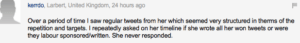 “You see I knew Mone for about a year around 2011/12 time and realised that there was very little she wouldn’t lie about so I quietly dropped her at that time.”