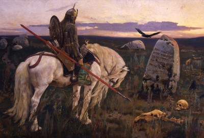 A vityaz (Russian knight) comes to a fork in the road and sees a menhir with an inscription that reads: “If you ride to the left, you will lose your horse, if you ride to the right, you will lose your head“.