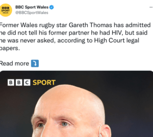 It began simply: “Former Wales rugby star Gareth Thomas has admitted he did not tell his ex-partner he had HIV, but said he was never asked, according to High Court legal papers”.