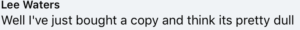 Mr Waters has stated on Facebook (FB) about a new Welsh newspaper called The National (TN): “Well I’ve just bought a copy and think its pretty dull”, which was ironic as he had wished an earlier ‘pilot’ “Best of luck”.