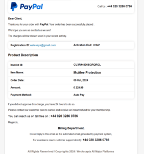 Or there’s the one offering you a ‘receipt’ for goods you never ordered, and giving a phone number for queries.