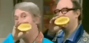 But part of the 1976 sketch (which I must admit is very funny) shows them using grapefruits to mimic a black man’s lips when a song sung by a black man is played, and the audience clap.