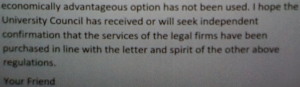 Another message in the hours afterwards was also addressed to the chair of the university council, as well as staff and attached a letter from ‘Your friend’ purportedly raising worries about public procurement.