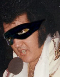 For years after his “death” Elvis remained underground.  He found being “dead” gave him greater freedom to pursue his favourite pastime of fighting crime.  At first, he was tackling things like bank robberies and muggings on an ad-hoc basis using the time honoured superhero method of lurk and pounce.  He wore a mask for two reasons. The first to conceal the fact that he was Elvis; after all, he was undercover. The second was that if the mask was dislodged during a fight, his enemy would be so staggered that they were being beaten up by Elvis they would lose their composure and fall prey to his sneak pincer move.