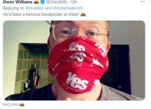 He has ‘liked’, as well, a tweet proclaiming that he should be “President of an Independent Cymru”, apparently flying in the face of the rules on impartiality that have been emphasised by his superior, the BBC’s Director General Tim Davie.