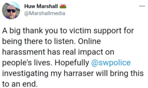 But it seems the police HAVE had time to investigate Mr Marshall for alleged harassment. Ironically this is what he accuses me of doing by publishing facts about his controversial background, and he has claimed online that he has spoken to Victim Support about it as well as hoping South Wales Police (SWP) will bring it to an end.